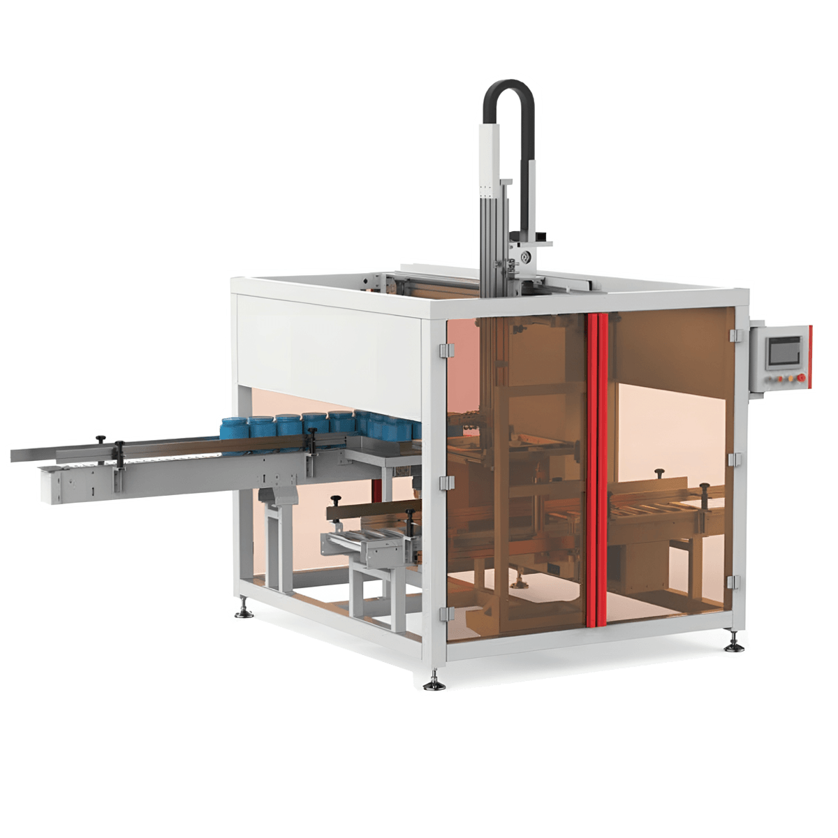 User-friendly HMI, PLC control, quick carton size change-over, safety doors system.